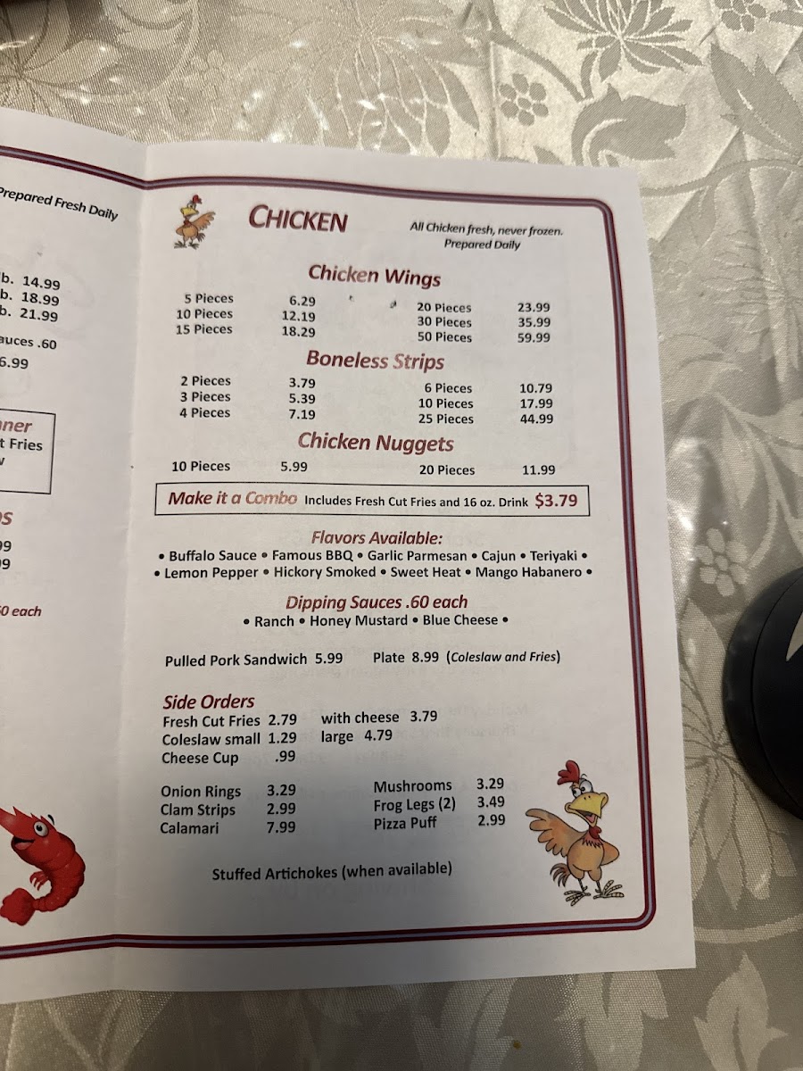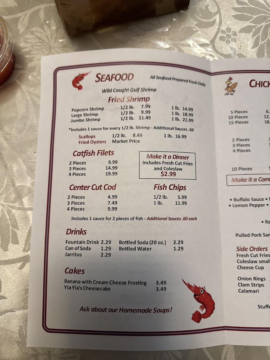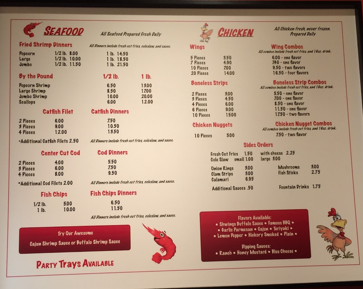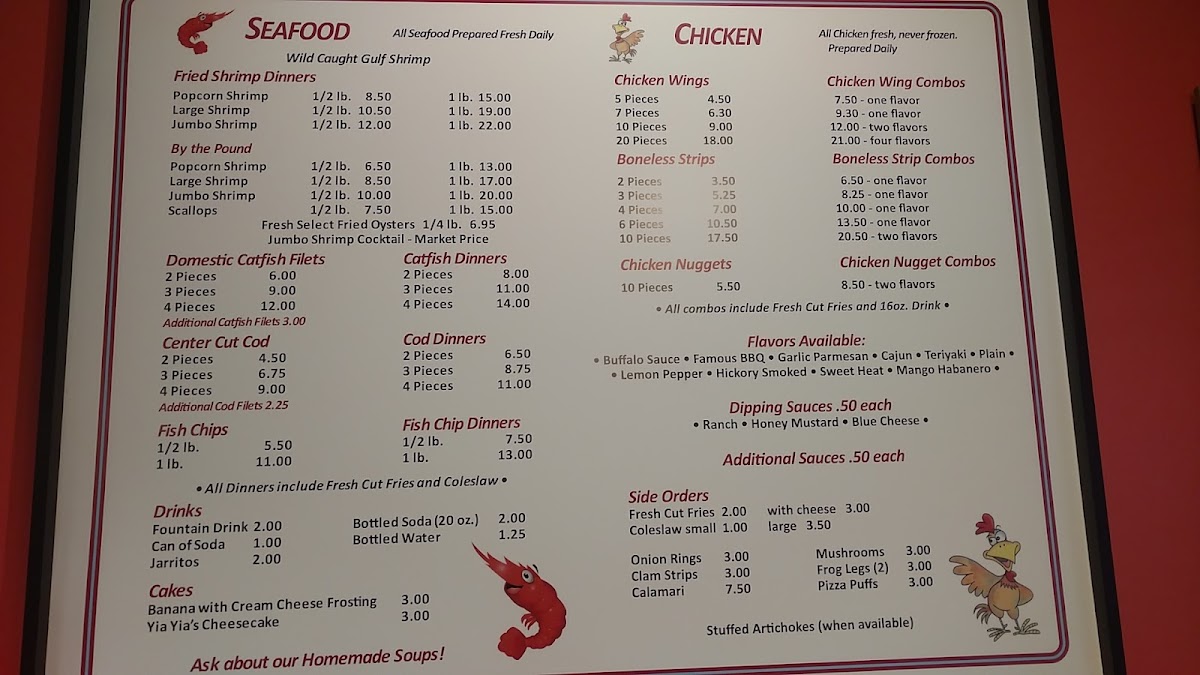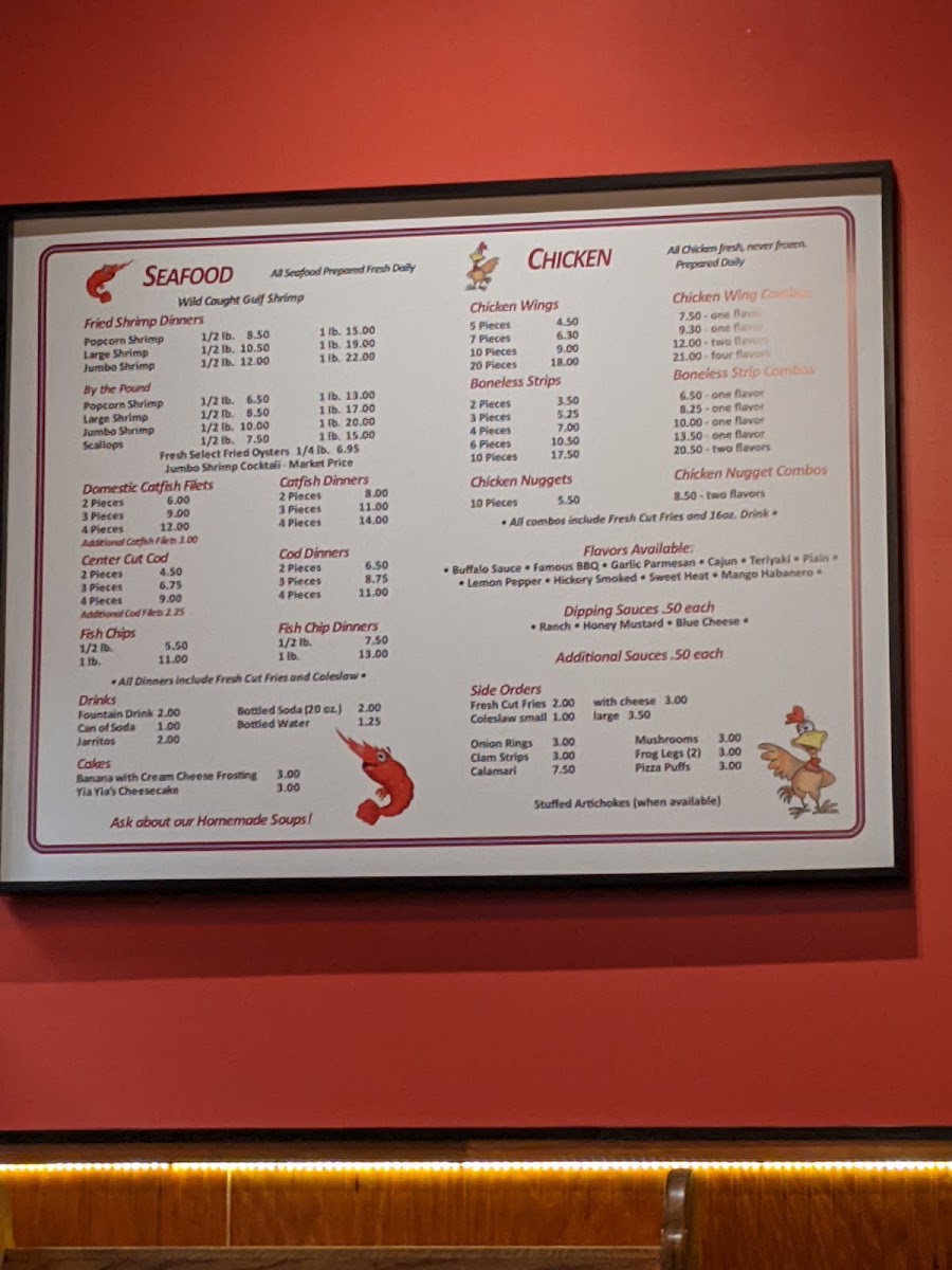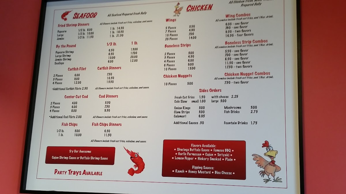 1 lb. large shrimp, fried. Served with choice of cocktail, hot, or tartar sauce.